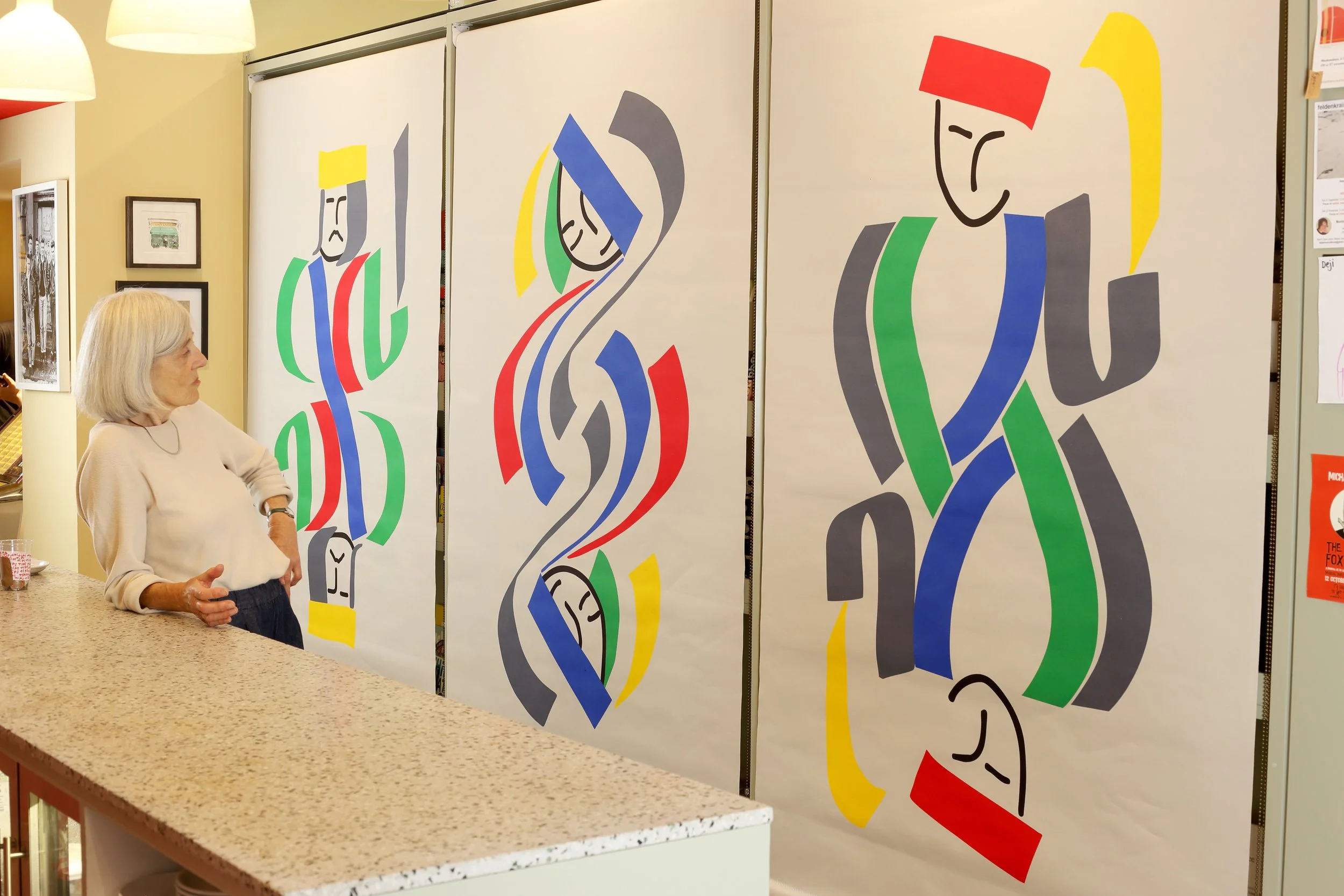 Hand printed window and wall hangings.